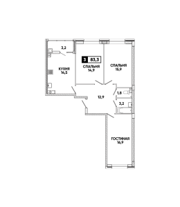 3-комнатная квартира 83,3 м2