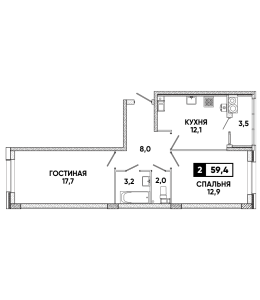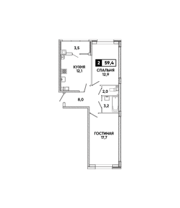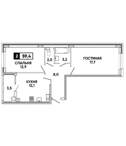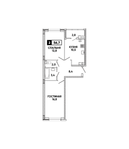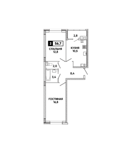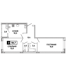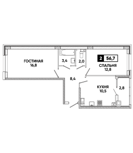 2-комнатная квартира 56,7 м2