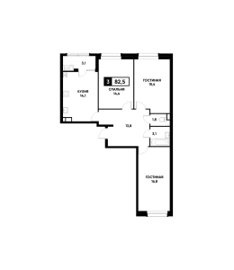 3-комнатная квартира 82,5 м2
